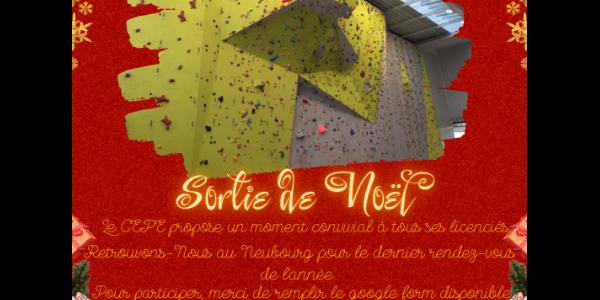 Venez fêter Noël en grimpant sur le mur du NEC ! Le club du Neubourg nous accueille samedi 20 décembre 2025 de 10h30 à 16 heures pour fêter Noel et partager un moment de grimpe sur leur mur. Cet Evénement est ouvert à tous les adhérents du CEPE, enfants, ados et adultes.